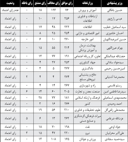 پس از پایان بررسی صلاحیت گزینههای پیشنهادی رئیسجمهور که از روز شنبه و در دو شیفت در مجلس در جریان بود دیروز عصر رایگیری در صحن علنی مجلس با کاغذ انجام شد.