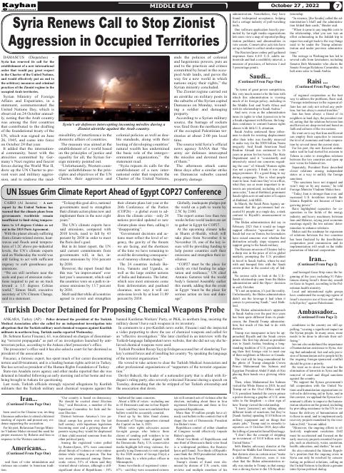 Syria Renews Call to Stop Zionist Aggression in Occupied Territories