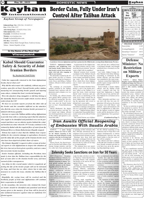 Kabul Should Guarantee Safety & Security of Joint Iranian Borders
