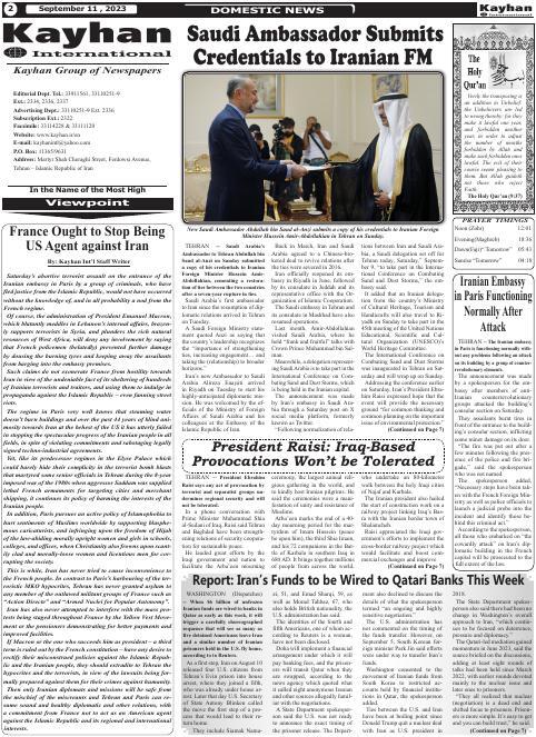 France Ought to Stop Being US Agent against Iran