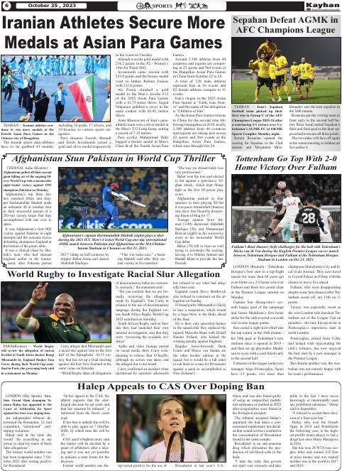 Iranian Athletes Secure More Medals at Asian Para Games