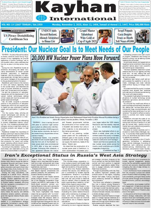 President: Our Nuclear Goal Is to Meet Needs of Our People