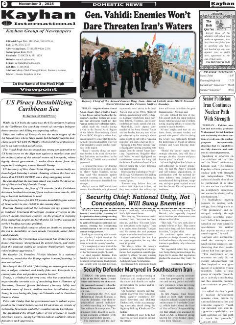 Security Chief: National Unity, Not Concession, Will Sway Enemies