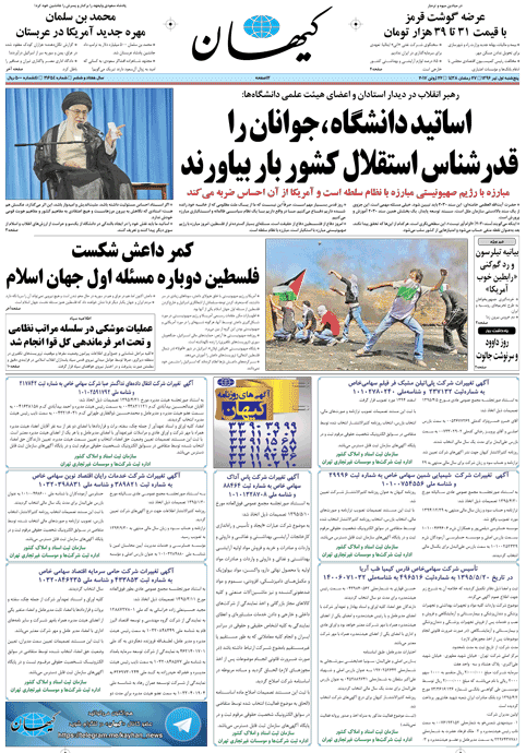 هم اکنون می توانید عضو کانال کیهان در تلگرام شوید