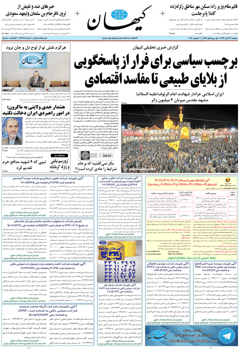 هم اکنون می توانید عضو کانال کیهان در تلگرام شوید