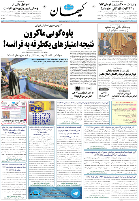 هم اکنون می توانید عضو کانال کیهان در تلگرام شوید