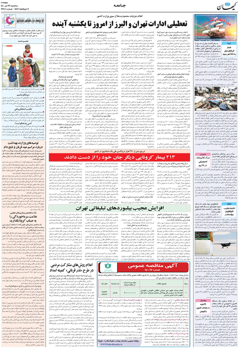 تعطیلی ادارات تهران و البرز از امروز تا یکشنبه آینده