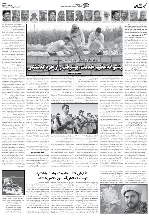 نگارش کتاب «شهید بهشت هشتم» توسـط دانشآمــوز کلاس هشتم