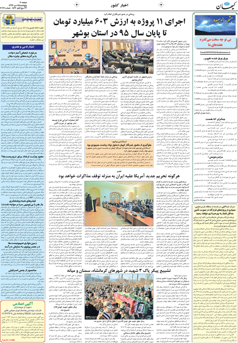 اجرای 11 پروژه به ارزش 603 میلیارد تومان تا پایان سال 95 در استان بوشهر