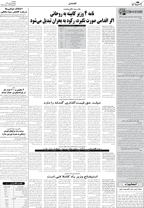 نامه 4 وزیر کابینه به روحانی اگر اقدامی صورت نگیرد، رکود به بحران تبدیل میشود