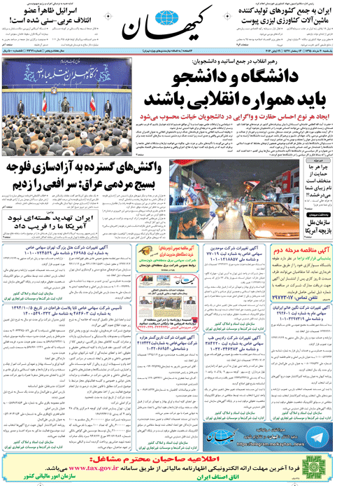 هم اکنون می توانید عضو کانال کیهان در تلگرام شوید