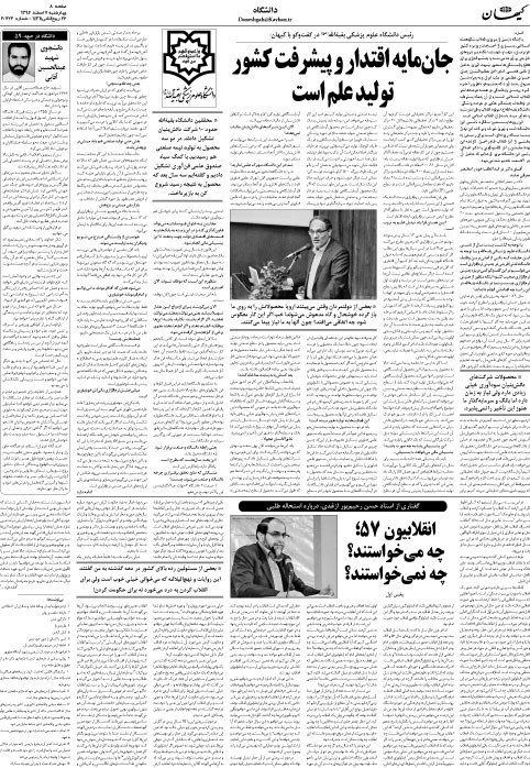 رئیس دانشگاه علوم پزشکی بقیهالله(عج) در گفتوگو با کیهان:جانمایه اقتدار و پیشرفت کشورتولید علم است