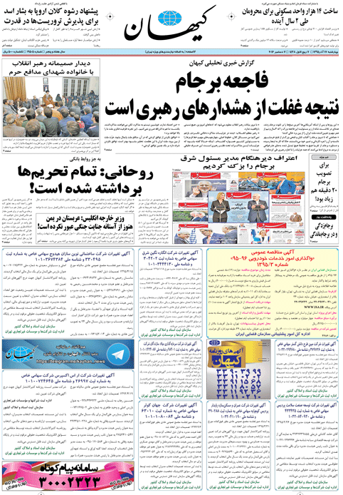 هم اکنون می توانید عضو کانال کیهان در تلگرام شوید
