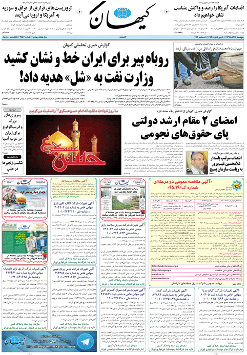 هم اکنون می توانید عضو کانال کیهان در تلگرام شوید