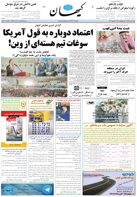 هم اکنون می توانید عضو کانال کیهان در تلگرام شوید
