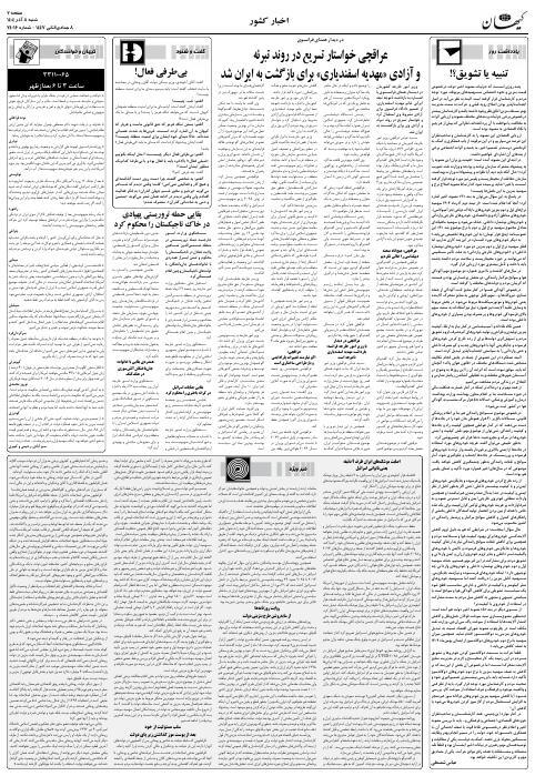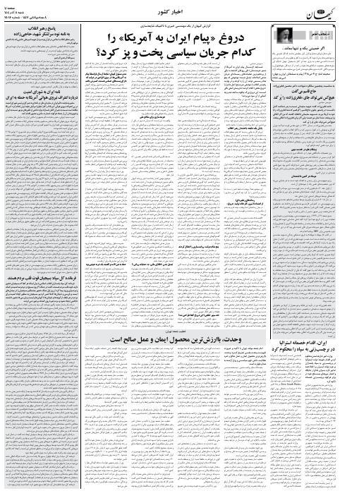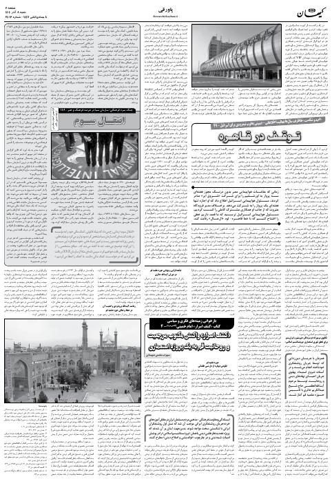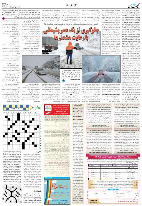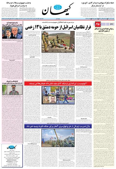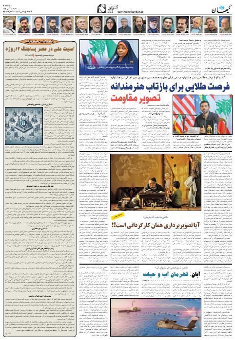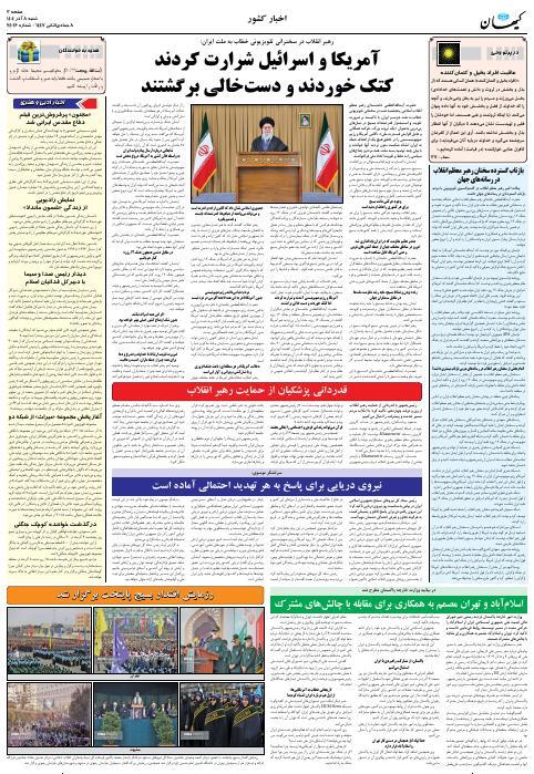 روزنامه فارسی کیهان - سال هشتاد و چهارم شماره 24016|شنبه ۰۸ آذر ۱۴۰۴