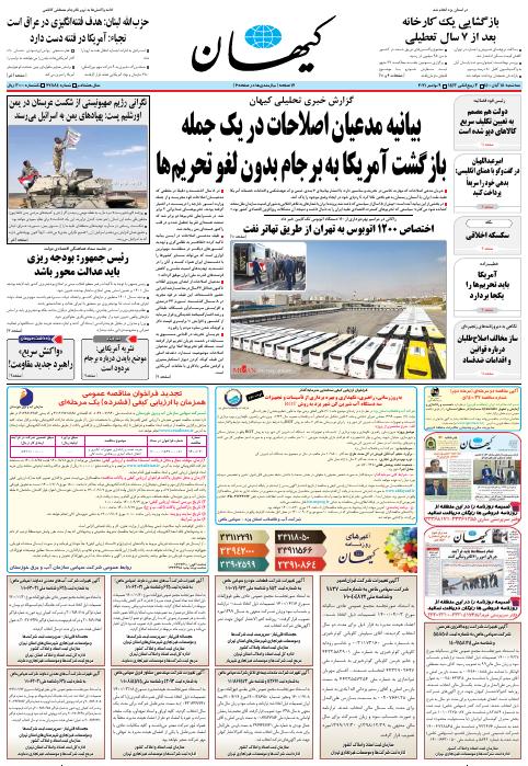 روزنامه فارسی کیهان - سال هشتادم شماره 22884 |سهشنبه ۱۸ آبان ۱۴۰۰