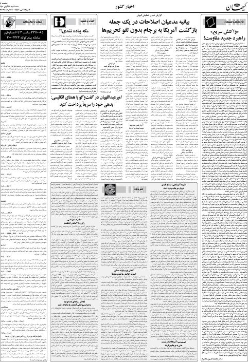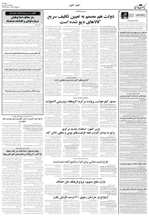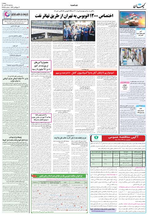 روزنامه فارسی کیهان - سال هشتادم شماره 22884|سهشنبه ۱۸ آبان ۱۴۰۰