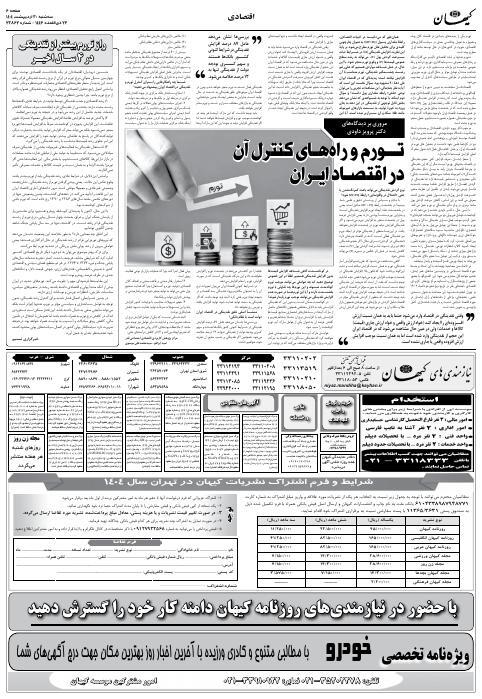 روزنامه فارسی کیهان - سال هشتاد و سوم شماره 23862|سهشنبه ۳۰ ارديبهشت ۱۴۰۴