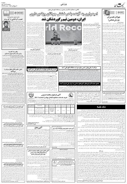 روزنامه فارسی کیهان - سال هشتاد و چهارم شماره 23977 |دوشنبه ۲۱ مهر ۱۴۰۴