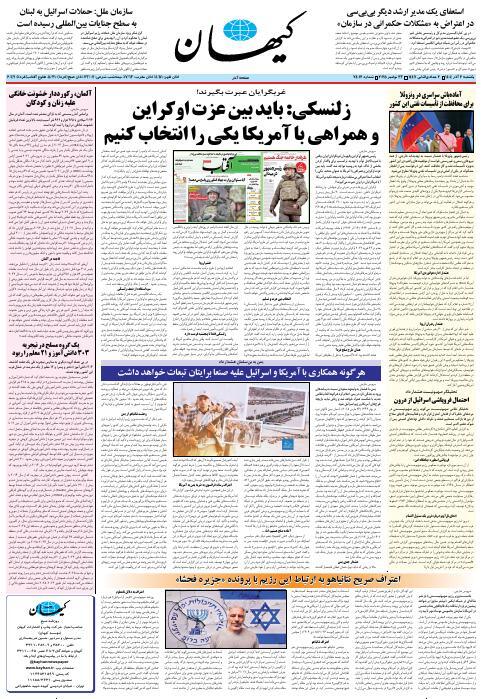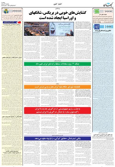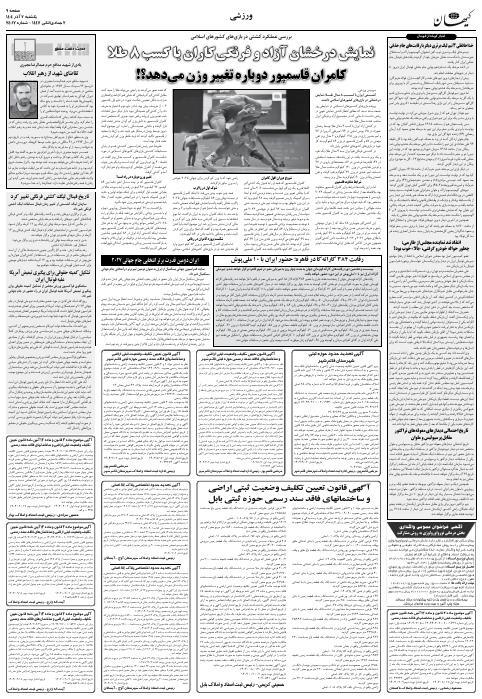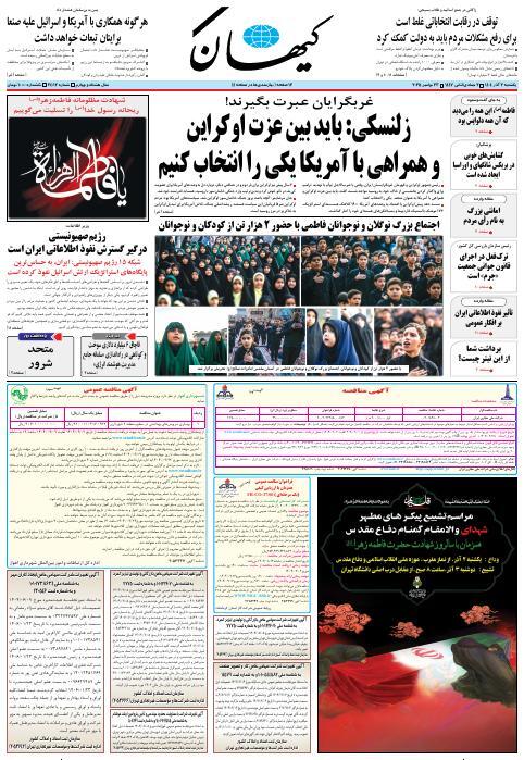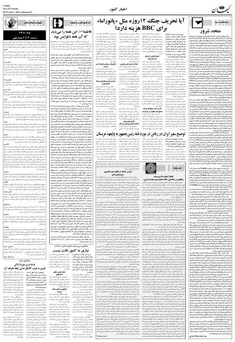 روزنامه فارسی کیهان - سال هشتاد و چهارم شماره 24012 |يکشنبه ۰۲ آذر ۱۴۰۴