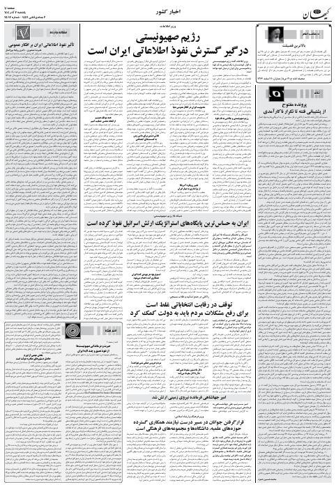 روزنامه فارسی کیهان - سال هشتاد و چهارم شماره 24012|يکشنبه ۰۲ آذر ۱۴۰۴