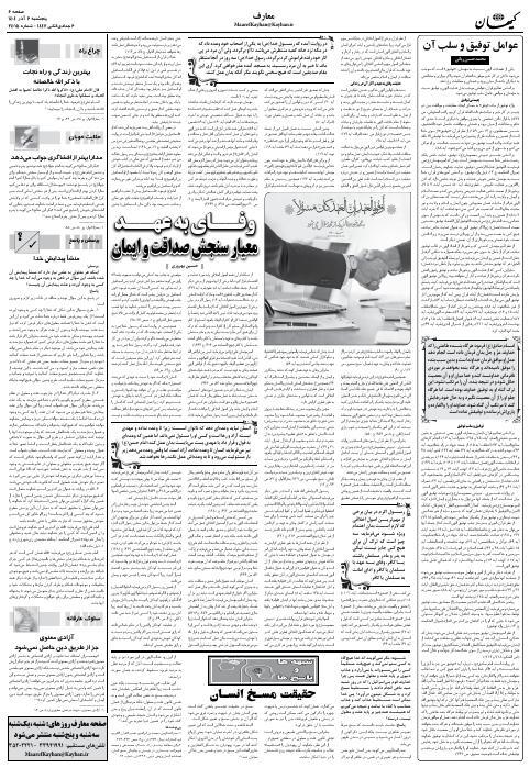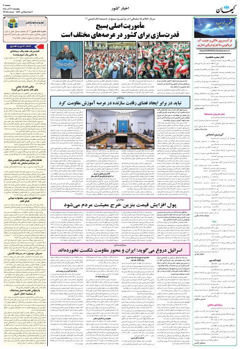 روزنامه فارسی کیهان - سال هشتاد و چهارم شماره 24015|پنجشنبه ۰۶ آذر ۱۴۰۴