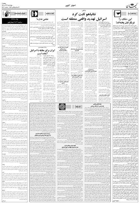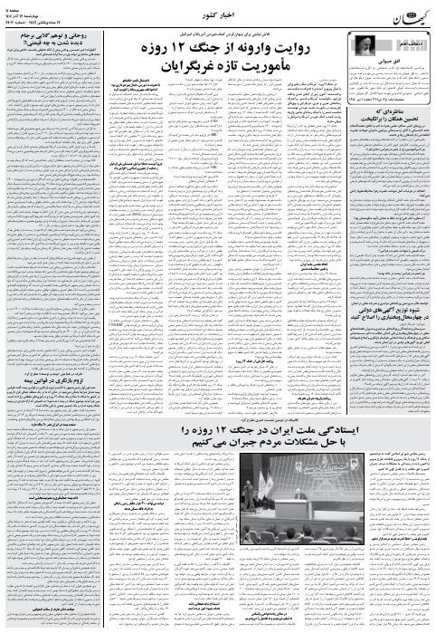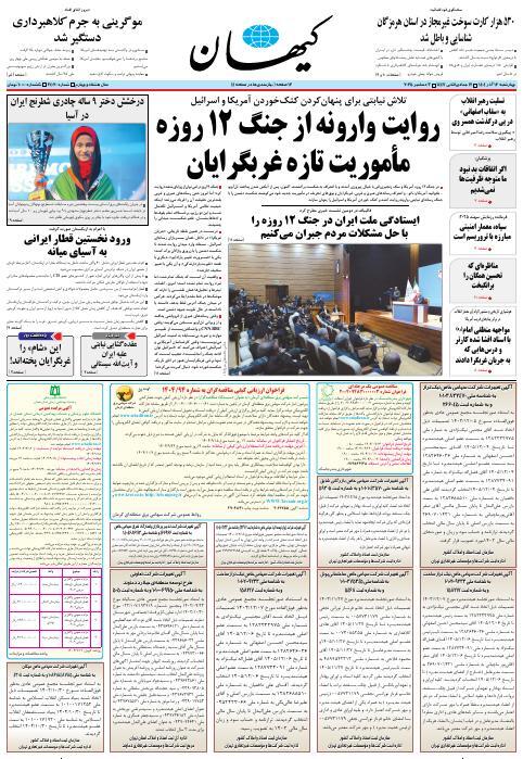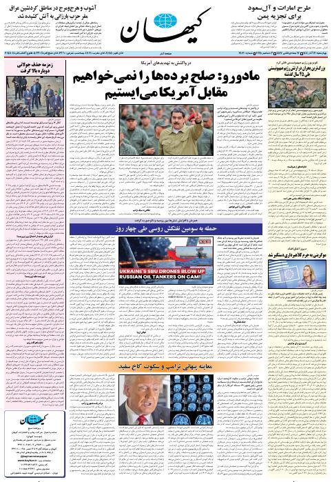 روزنامه فارسی کیهان - سال هشتاد و چهارم شماره 24020|چهارشنبه ۱۲ آذر ۱۴۰۴