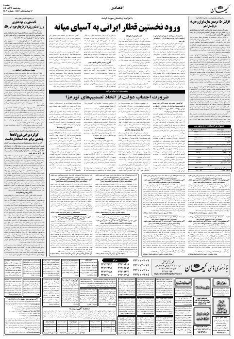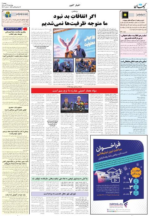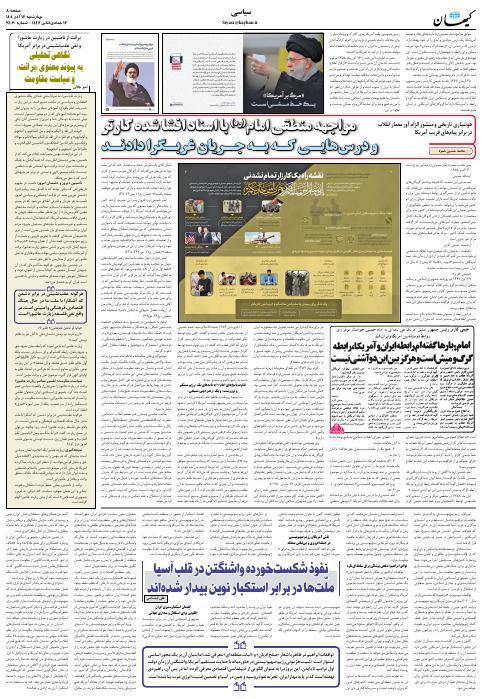 روزنامه فارسی کیهان - سال هشتاد و چهارم شماره 24020 |چهارشنبه ۱۲ آذر ۱۴۰۴