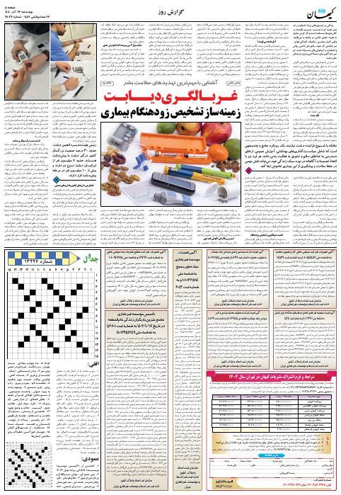 روزنامه فارسی کیهان - سال هشتاد و چهارم شماره 24032|چهارشنبه ۲۶ آذر ۱۴۰۴