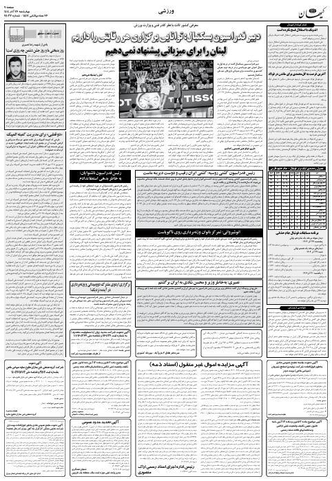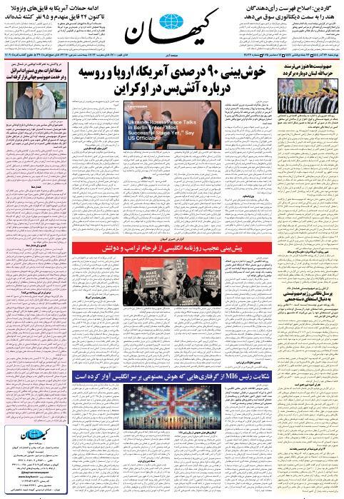 روزنامه فارسی کیهان - سال هشتاد و چهارم شماره 24032 |چهارشنبه ۲۶ آذر ۱۴۰۴
