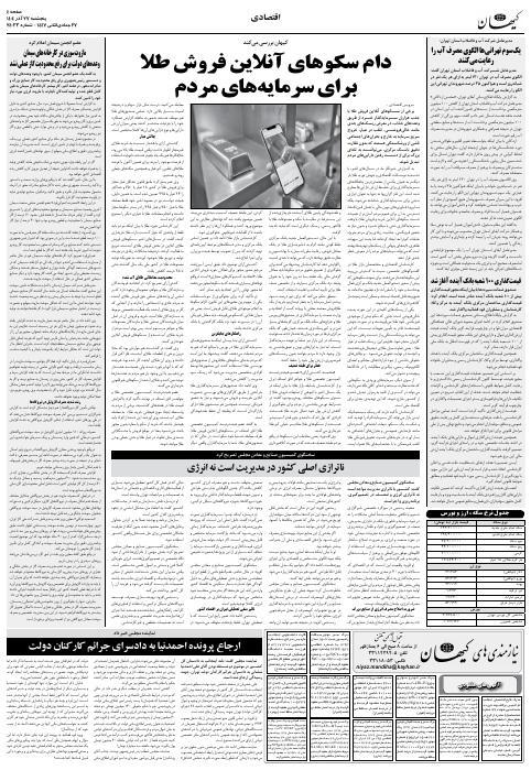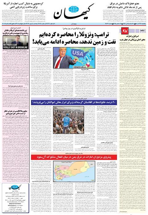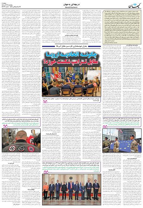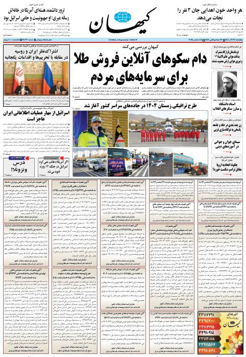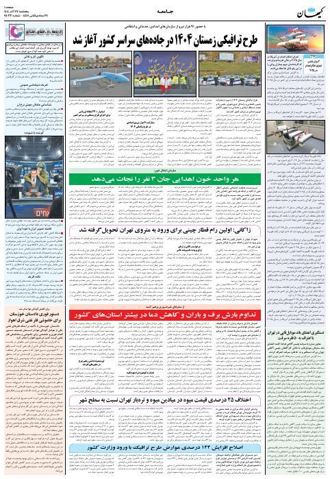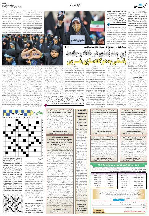 روزنامه فارسی کیهان - سال هشتاد و چهارم شماره 24033|پنجشنبه ۲۷ آذر ۱۴۰۴