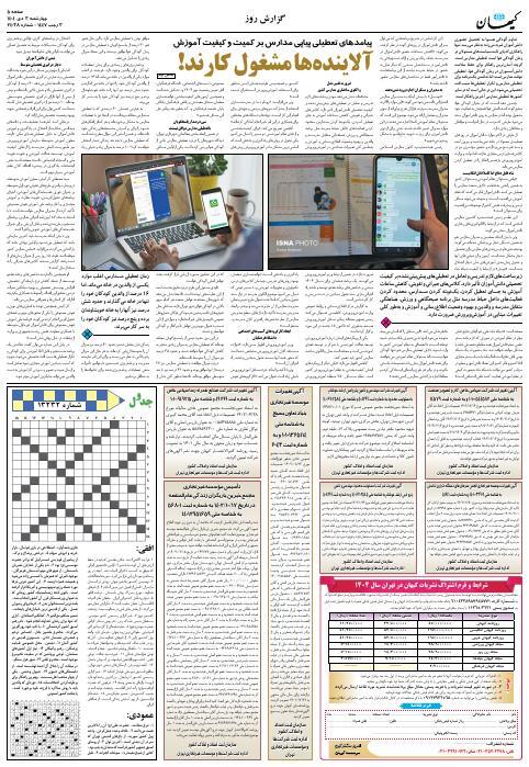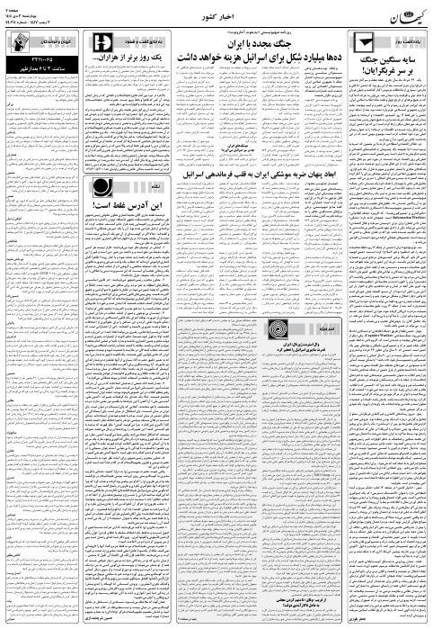 روزنامه فارسی کیهان - سال هشتاد و چهارم شماره 24038|چهارشنبه ۰۳ دی ۱۴۰۴