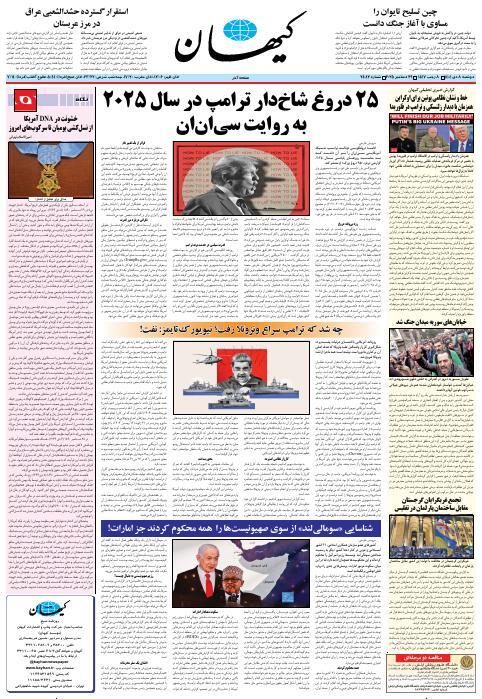 روزنامه فارسی کیهان - سال هشتاد و چهارم شماره 24042 |دوشنبه ۰۸ دی ۱۴۰۴