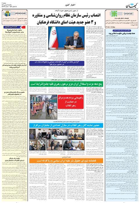 روزنامه فارسی کیهان - سال هشتاد و چهارم شماره 24061|يکشنبه ۰۵ بهمن ۱۴۰۴