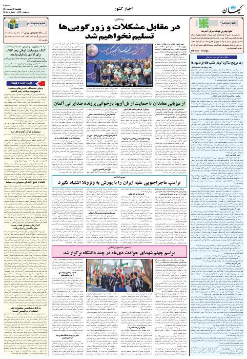 روزنامه فارسی کیهان - سال هشتاد و چهارم شماره 24082 |يکشنبه ۰۳ اسفند ۱۴۰۴