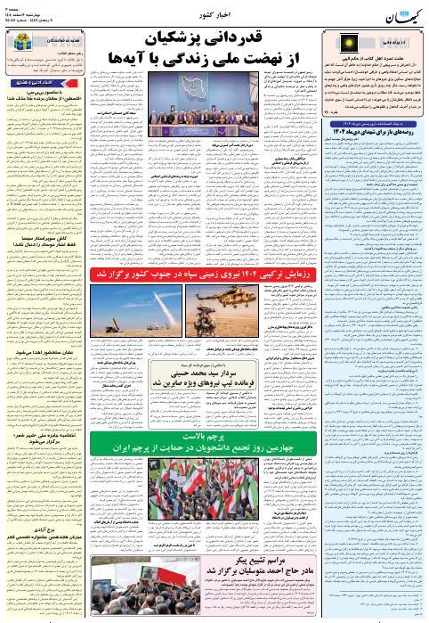روزنامه فارسی کیهان - سال هشتاد و چهارم شماره 24085|چهارشنبه ۰۶ اسفند ۱۴۰۴