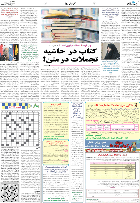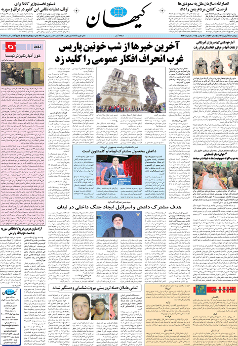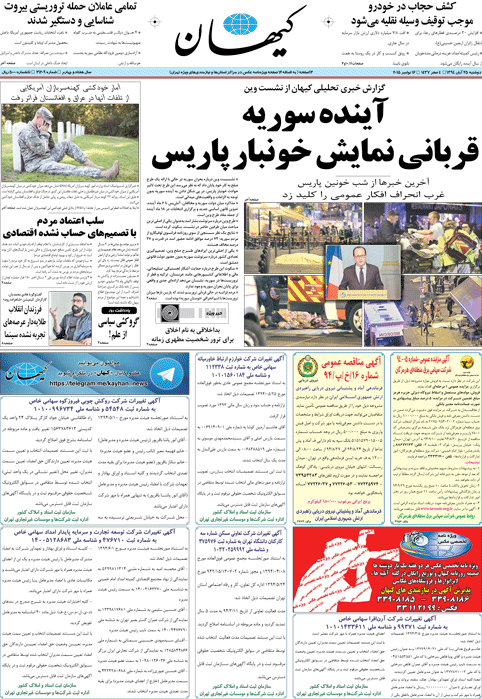 روزنامه فارسی کیهان - سال هفتاد و چهارم شماره 21209 |دوشنبه ۲۵ آبان ۱۳۹۴