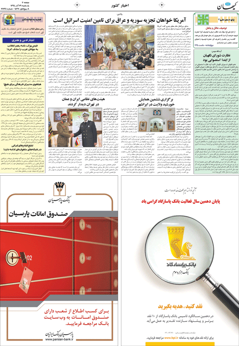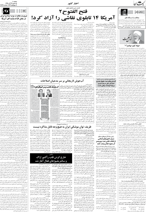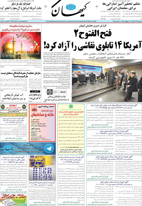 روزنامه فارسی کیهان - سال هفتاد و چهارم شماره 21234|يکشنبه ۲۹ آذر ۱۳۹۴