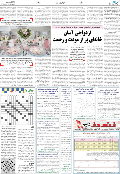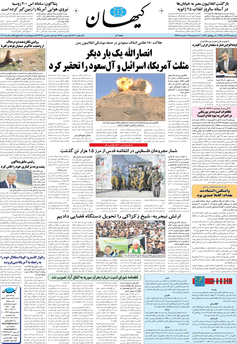 روزنامه فارسی کیهان - سال هفتاد و چهارم شماره 21234 |يکشنبه ۲۹ آذر ۱۳۹۴