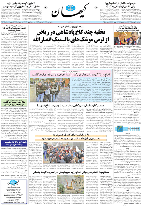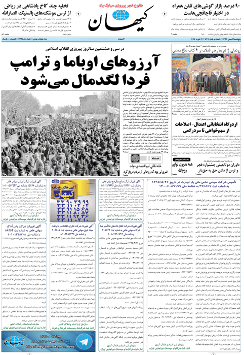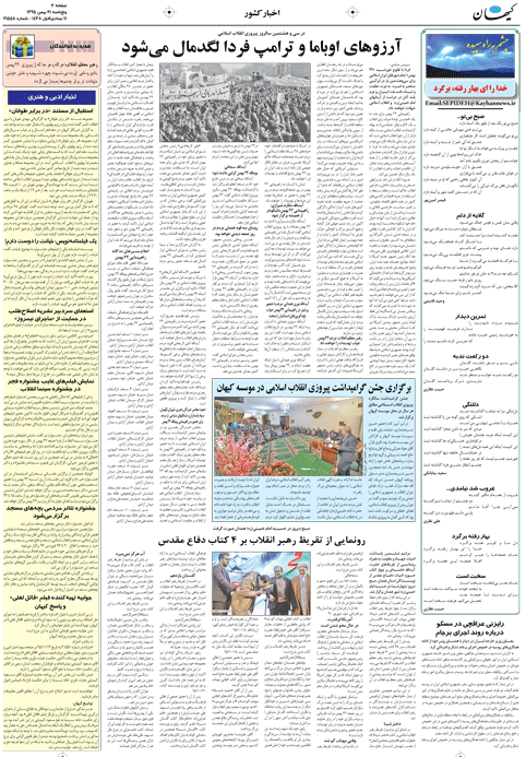روزنامه فارسی کیهان - سال هفتاد و چهارم شماره 21558|پنجشنبه ۲۱ بهمن ۱۳۹۵