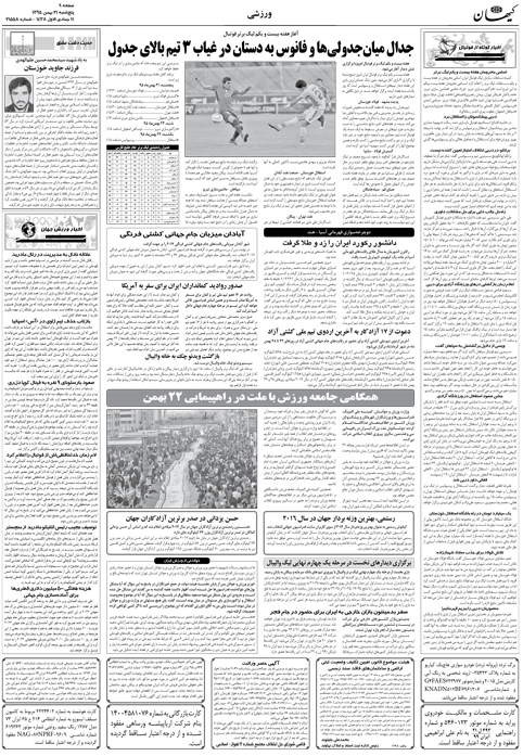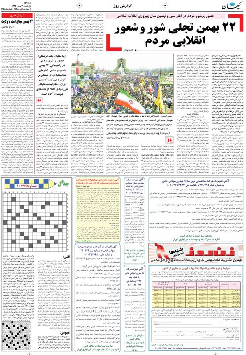 روزنامه فارسی کیهان - سال هفتاد و چهارم شماره 21558 |پنجشنبه ۲۱ بهمن ۱۳۹۵