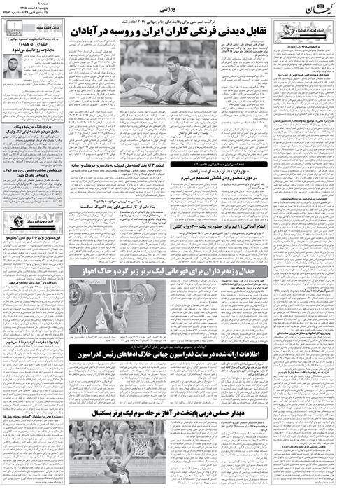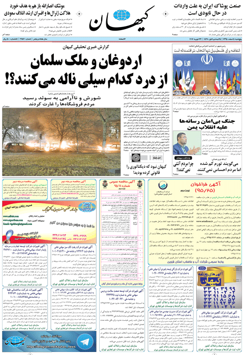روزنامه فارسی کیهان - سال هفتاد و چهارم شماره 21570 |پنجشنبه ۰۵ اسفند ۱۳۹۵