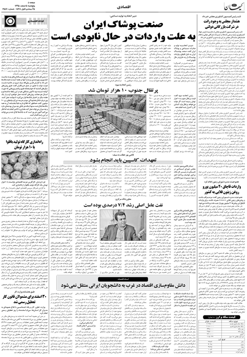 روزنامه فارسی کیهان - سال هفتاد و چهارم شماره 21570|پنجشنبه ۰۵ اسفند ۱۳۹۵
