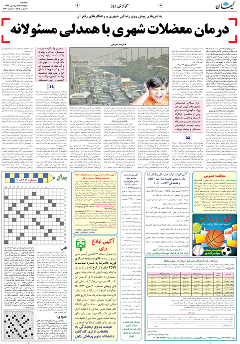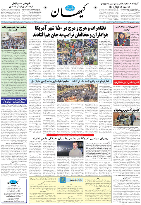 روزنامه فارسی کیهان - سال هفتاد و پنجم شماره 21600|دوشنبه ۲۸ فروردين ۱۳۹۶